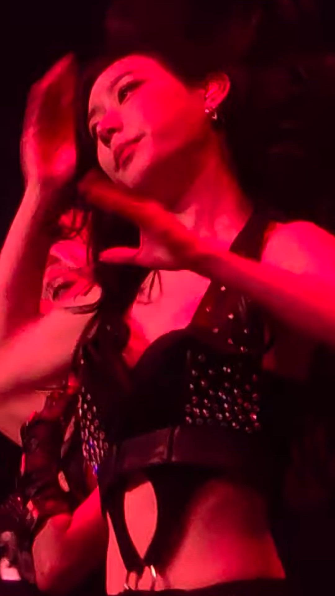 ITZY - Chaeryeong 패션 분석 ITZY Chaeryeong은 강렬한 레드 조명 아래에서 글램록 …