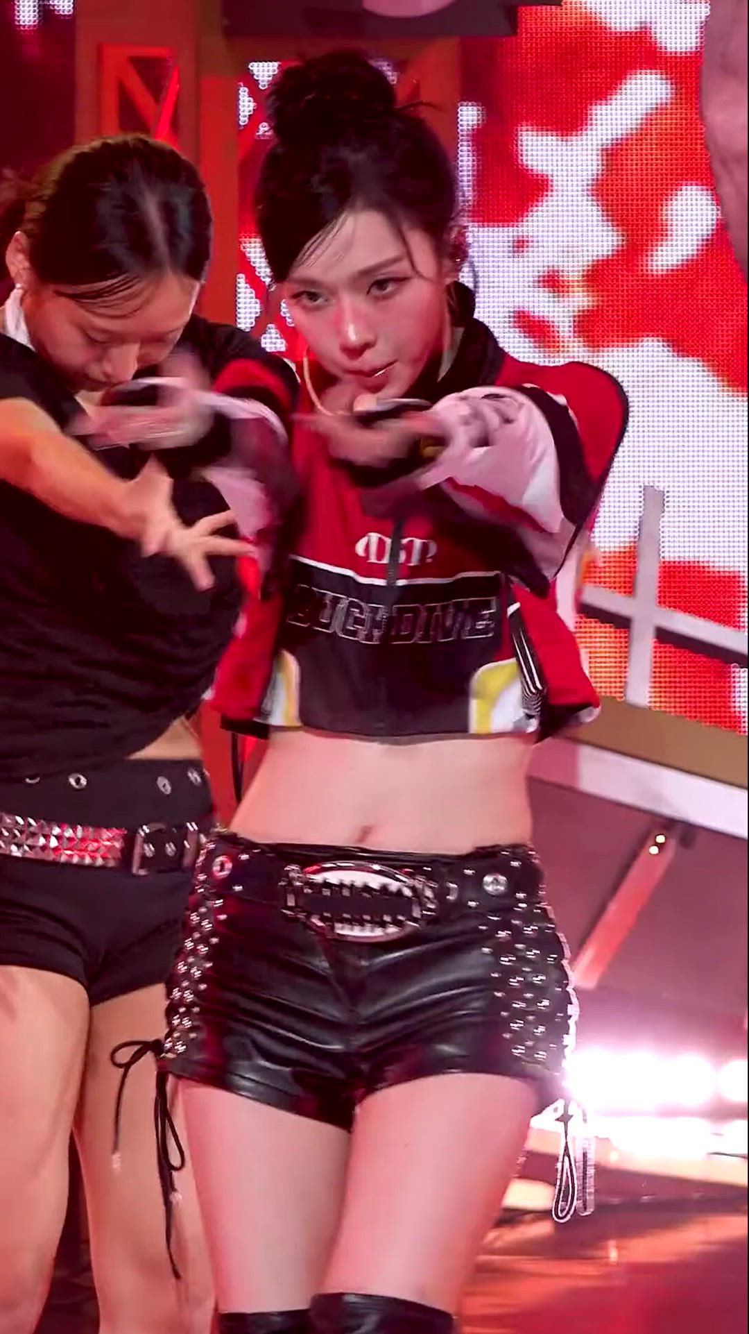 aespa - Winter 패션 분석 윈터는 강렬한 레드와 블랙 컬러가 돋보이는 크롭 레이싱 재킷을 착용하여…
