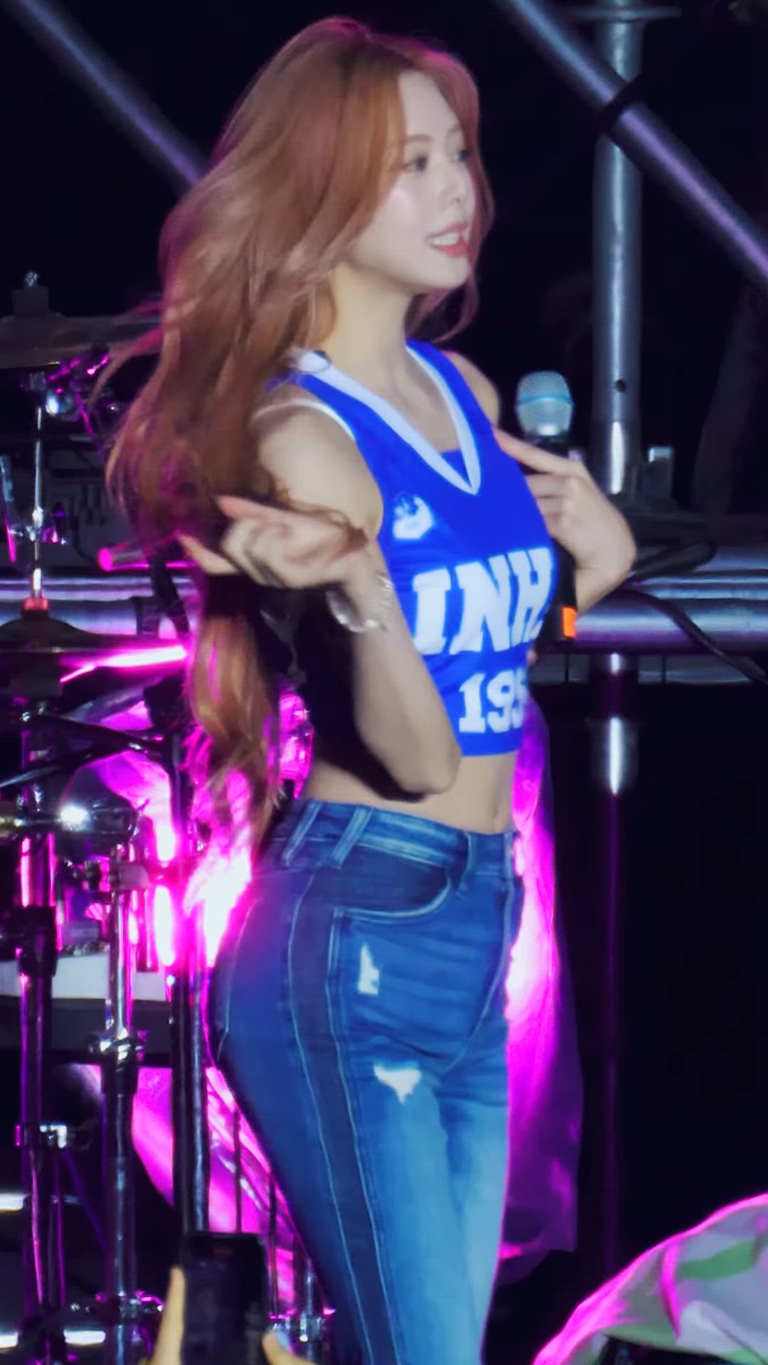 ITZY - Yuna 패션 분석 유나는 선명한 블루 컬러의 크롭탑과 연청 데님진을 매치하여 활동적인 스타일을…