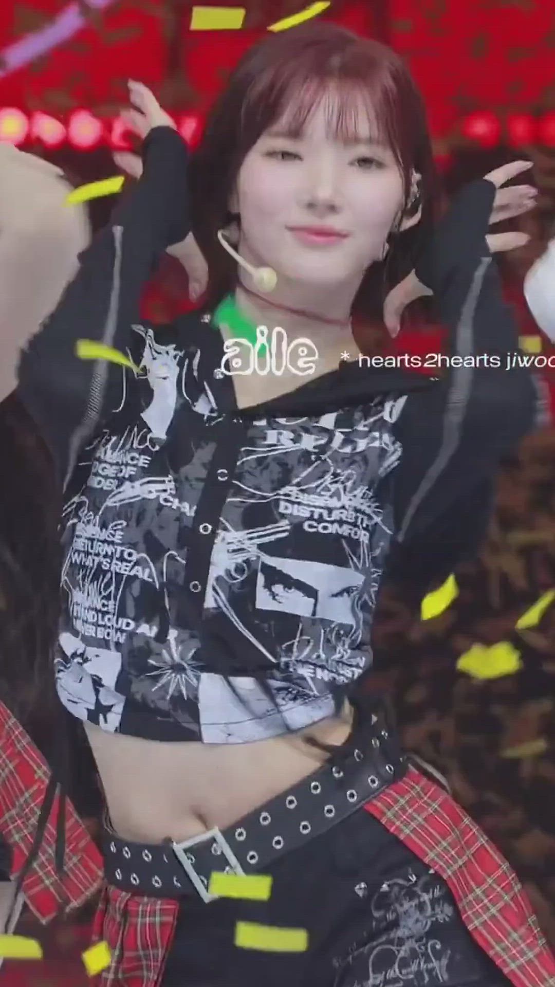 Jiwoo - Hearts2Hearts 패션 분석 지우는 펑크스타일이 돋보이는 강렬한 무대 의상을 선보였습니…