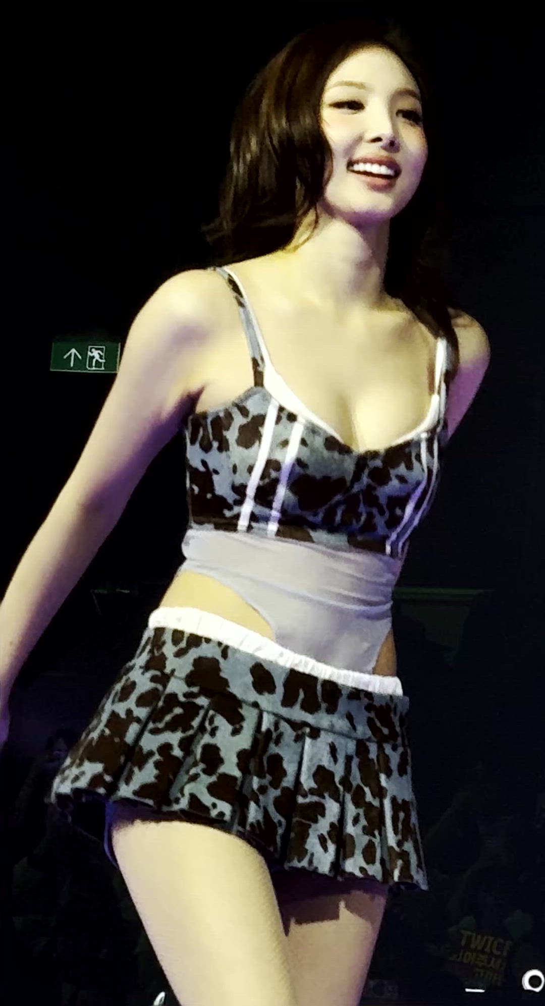 Nayeon - TWICE 패션 분석 나연은 대담한 카우 프린트가 돋보이는 스테이지웨어를 착용하여 활기차고 …