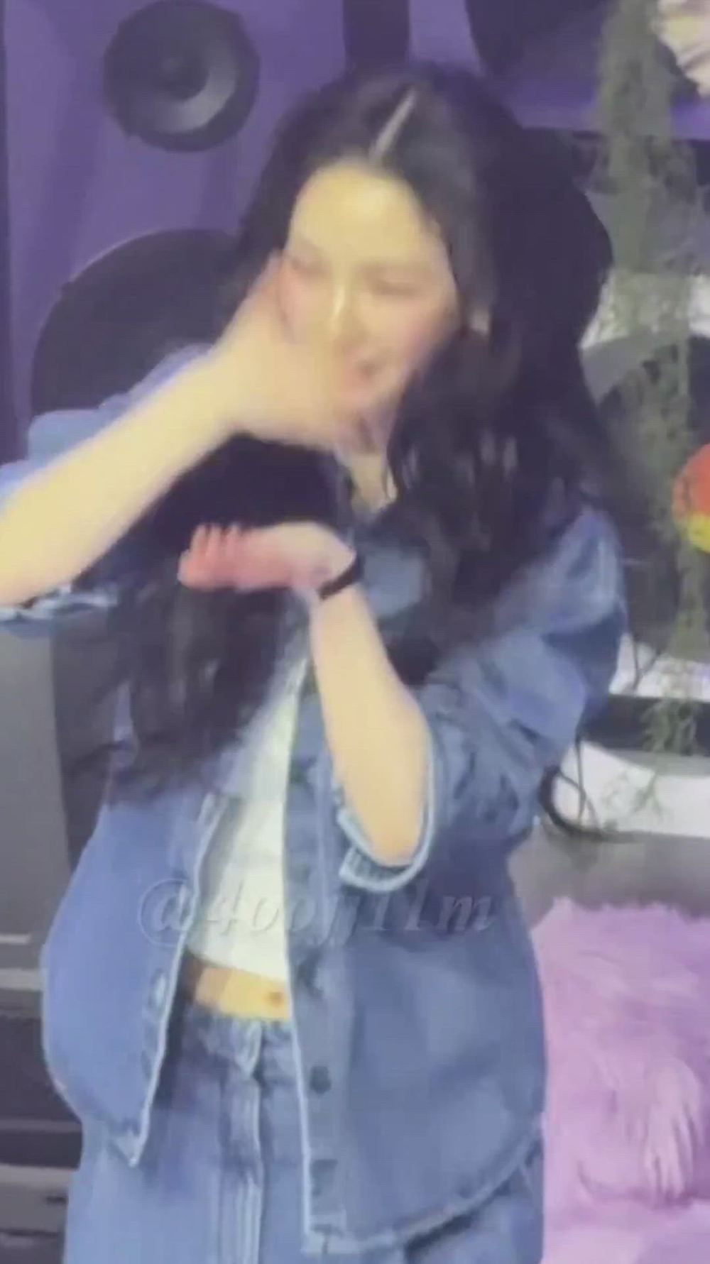 GIF-Karina 패션 분석 카리나는 캐주얼하면서도 스타일리시한 데님 온 데님 룩을 선보이고 있습니다. 오…