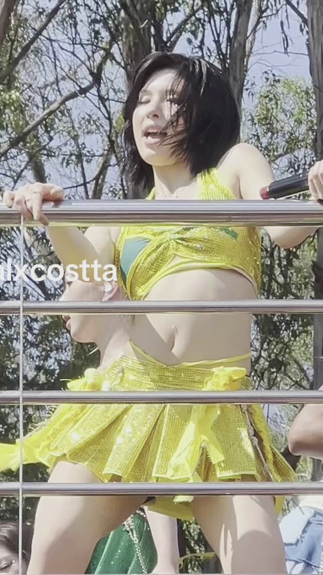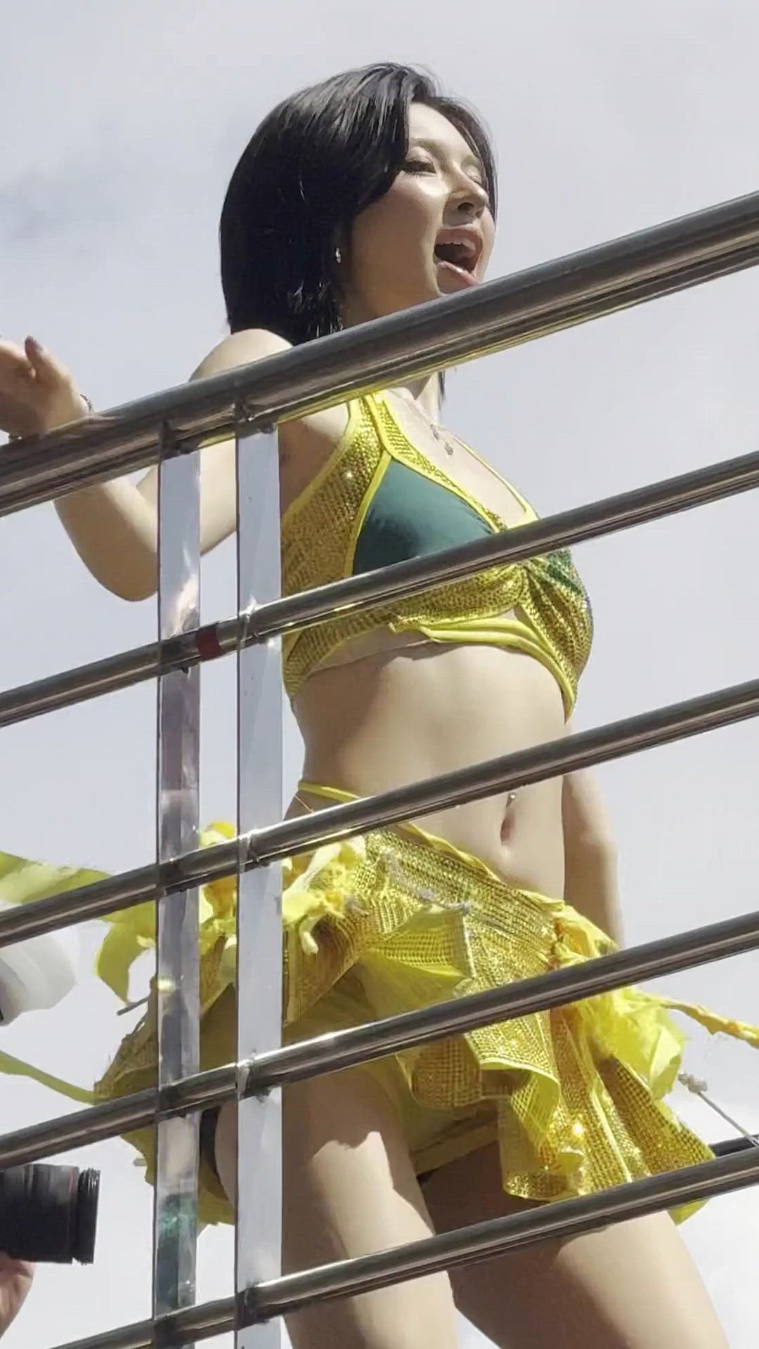 NMIXX - Bae 패션 분석 NMIXX 배이는 강렬한 네온 옐로우 컬러의 무대의상을 통해 활기차고 화려한…