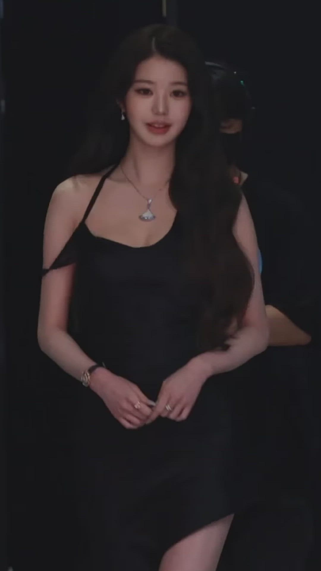 Ive - Wonyoung 패션 분석 원영은 럭셔리스타일의 블랙 드레스를 착용하여 우아하고 세련된 분위기를 …