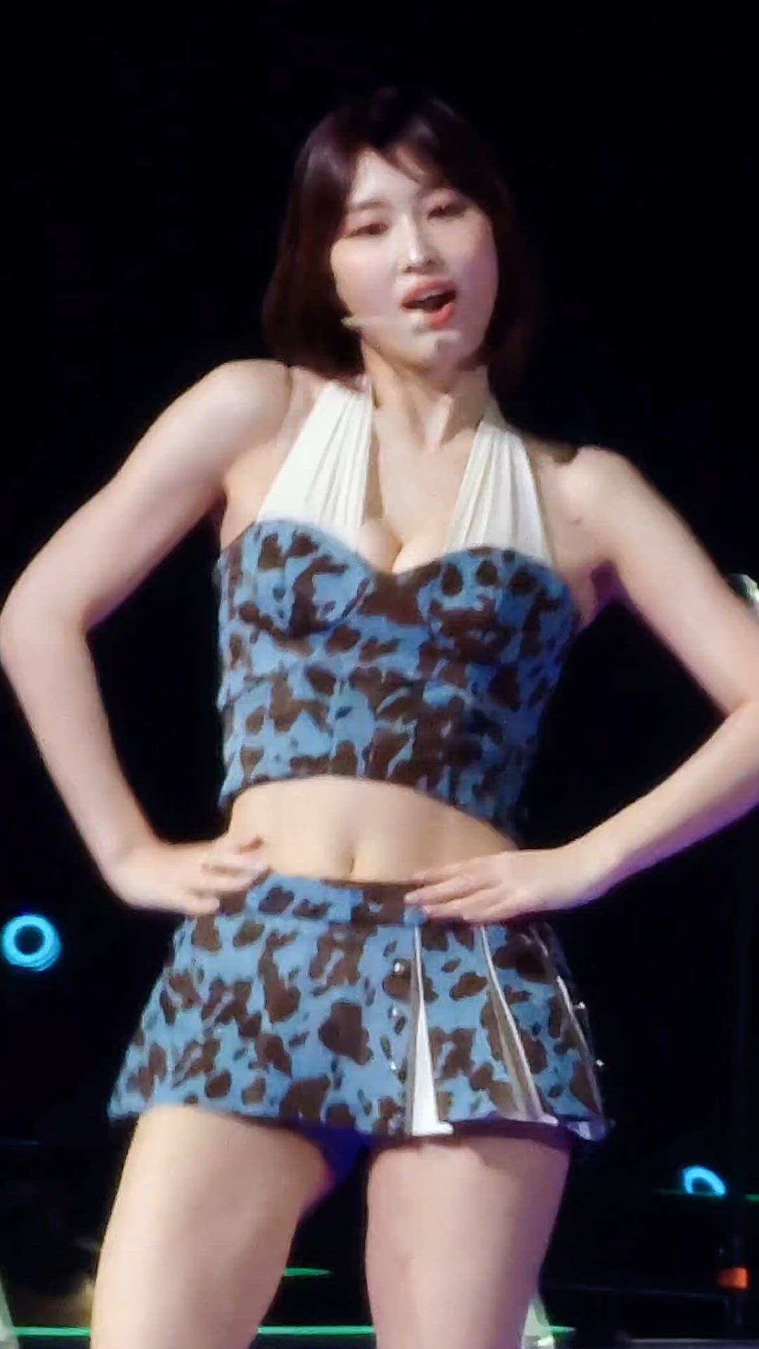 TWICE - Momo 패션 분석 TWICE 모모는 무대 위에서 트렌디한 카우 프린트 홀터넥 크롭톱과 미니 …