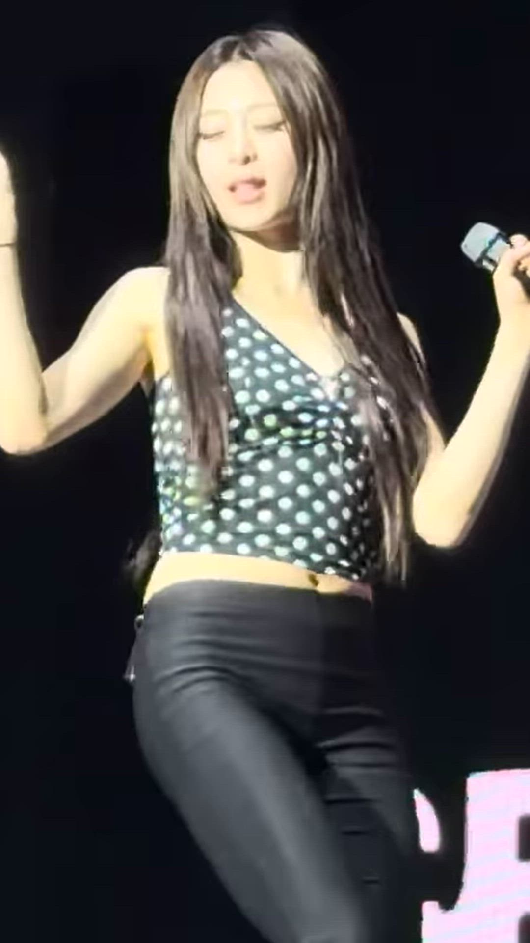 Chaewon - LE SSERAFIM 패션 분석 사진 속 김채원은 블랙 컬러의 과감한 무대 의상을 착용하여…