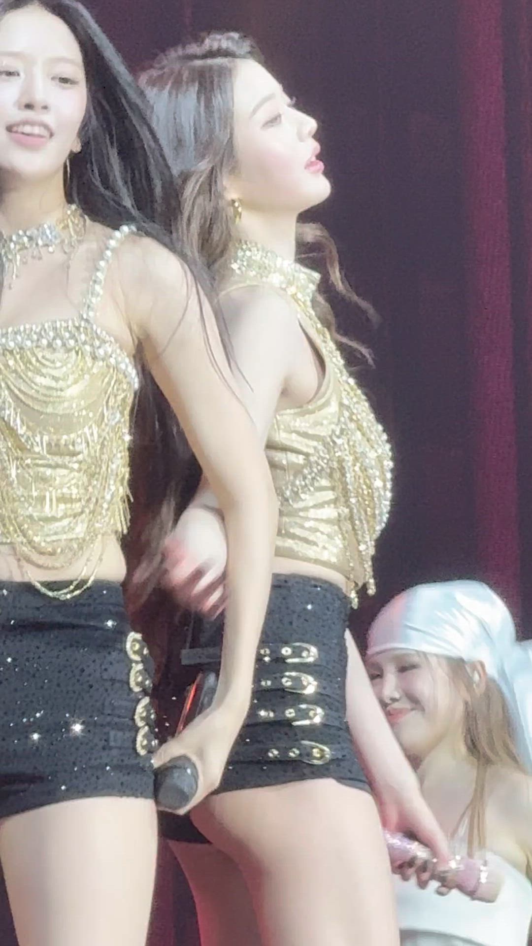 IVE-Wonyoung 패션 분석 장원영은 화려한 골드 시퀸 크롭탑과 블랙 미니스커트를 매치하여 시선을 사로…