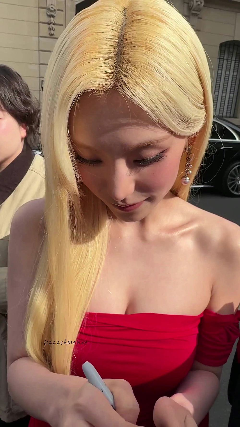 Yeji - ITZY 패션 분석 ITZY 예지 님은 강렬한 레드 컬러의 오프숄더 상의와 블론드 헤어를 매치하…
