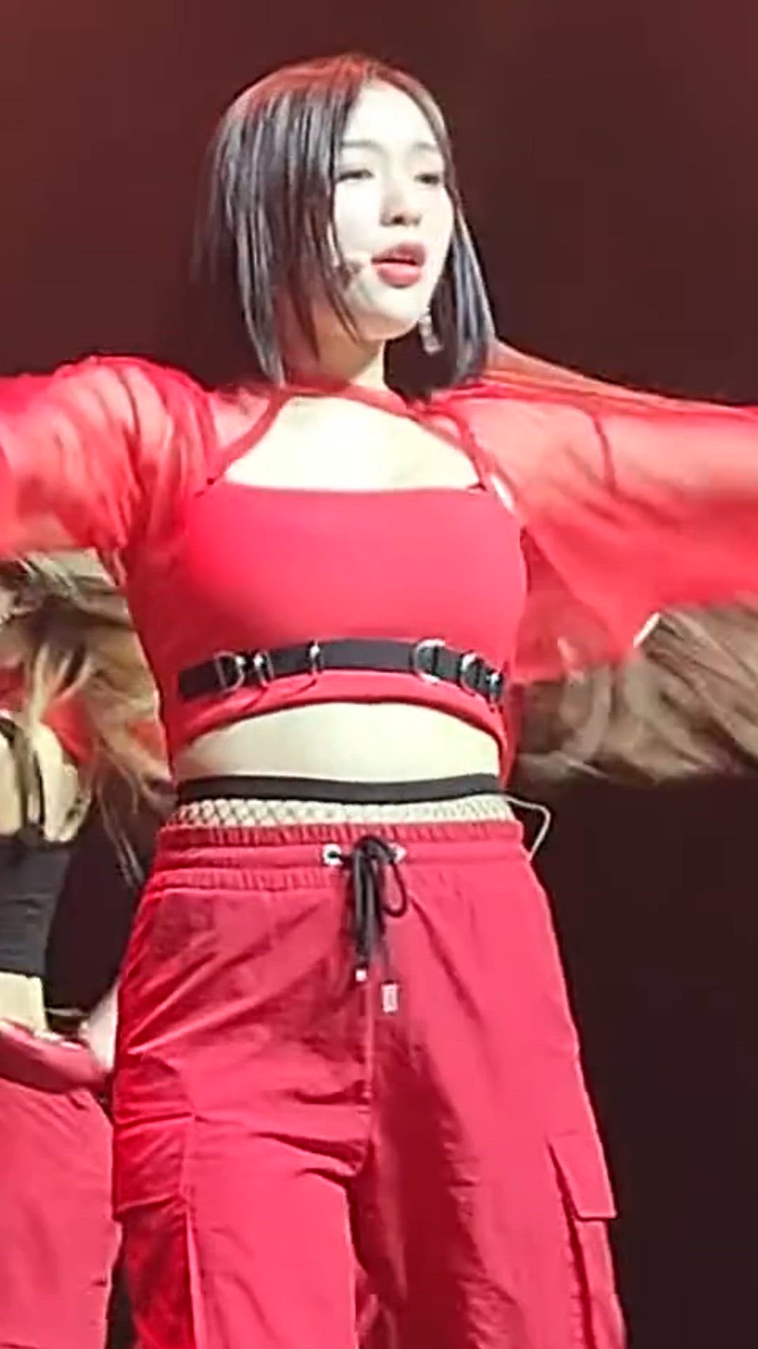 Dreamcatcher - Gahyun 패션 분석 드림캐쳐 가현은 강렬한 레드 컬러의 무대 의상을 착용하여 …