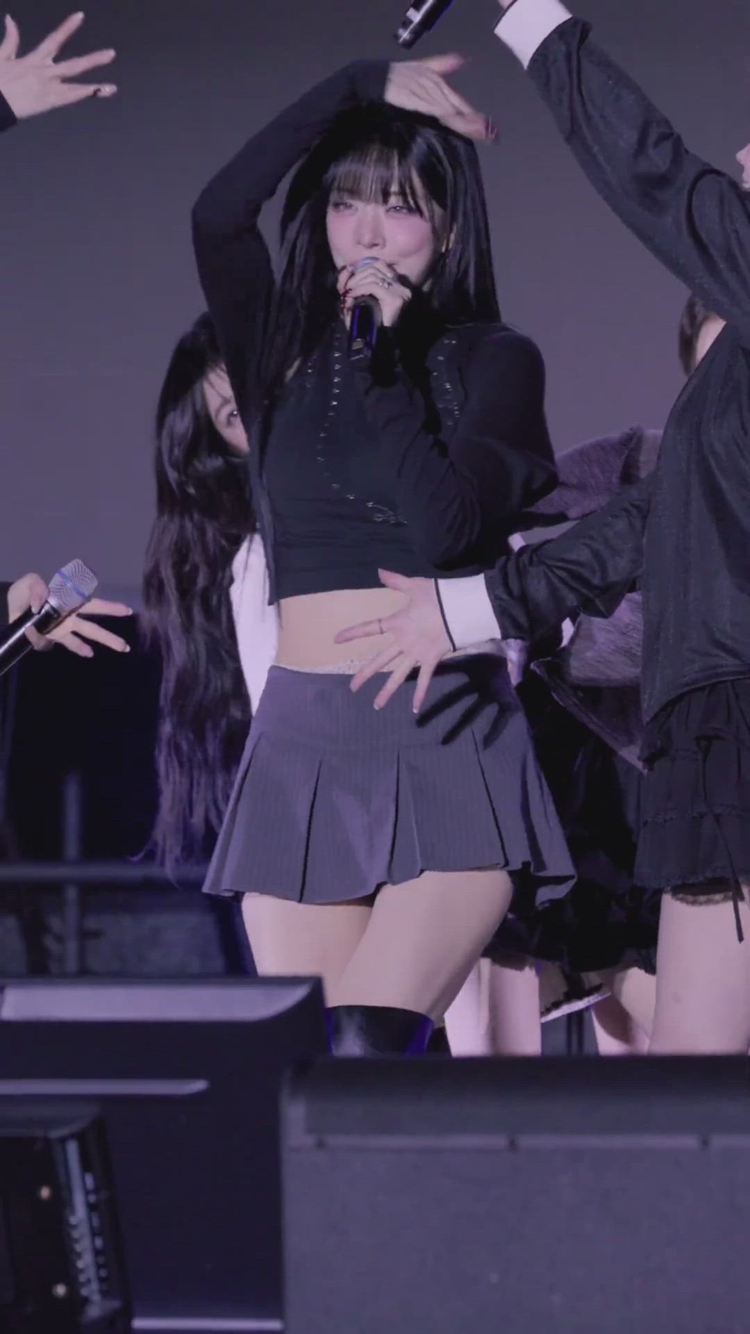 fromis_9 - Jiheon 패션 분석 fromis_9의 지헌은 무대에서 크롭 기장의 셔츠와 플리츠 스커…