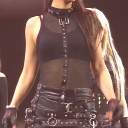 NMIXX - Haewon 패션 분석 해원님은 강렬하고 도발적인 무대 의상을 선보이고 있습니다. 블랙 롱 슬…