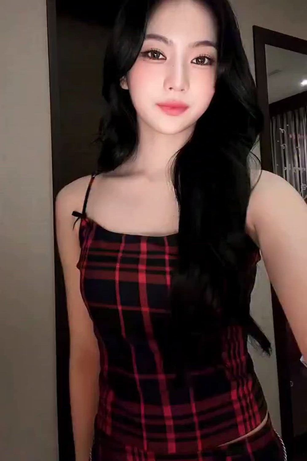 STAYC - Isa 패션 분석 STAYC의 Isa는 붉은색과 검은색이 조화된 트렌디한 체크 패턴의 캐미솔 …