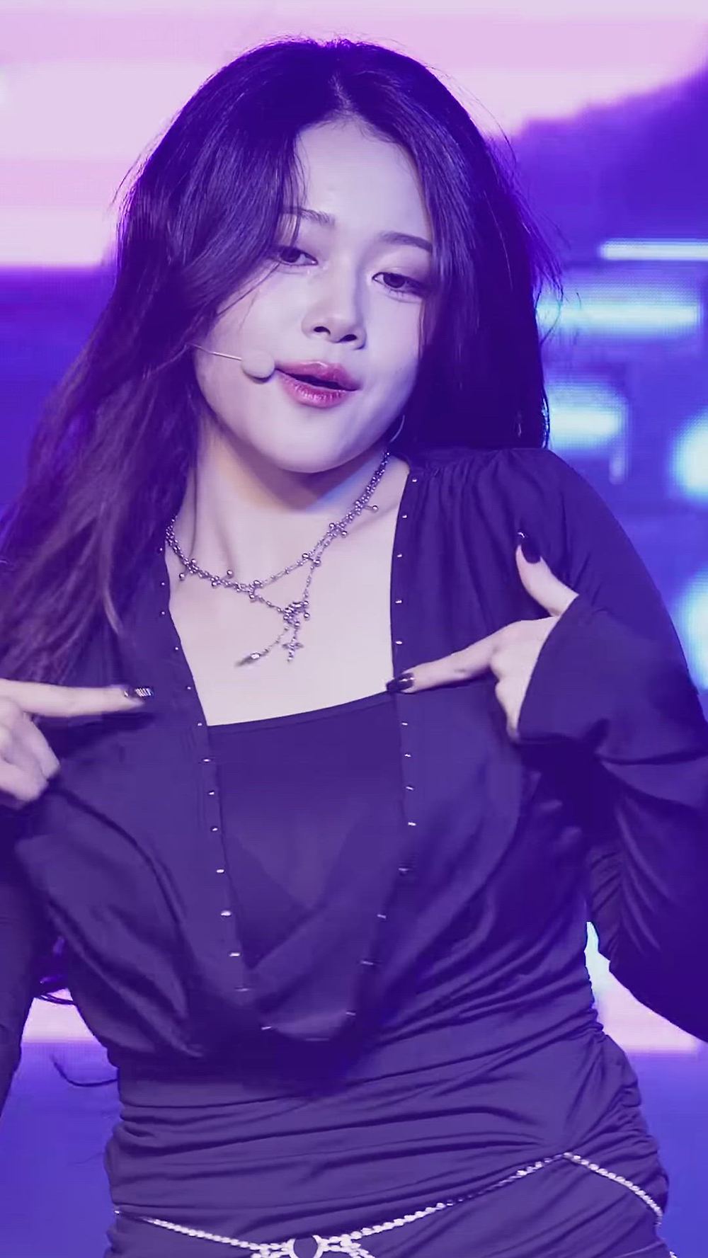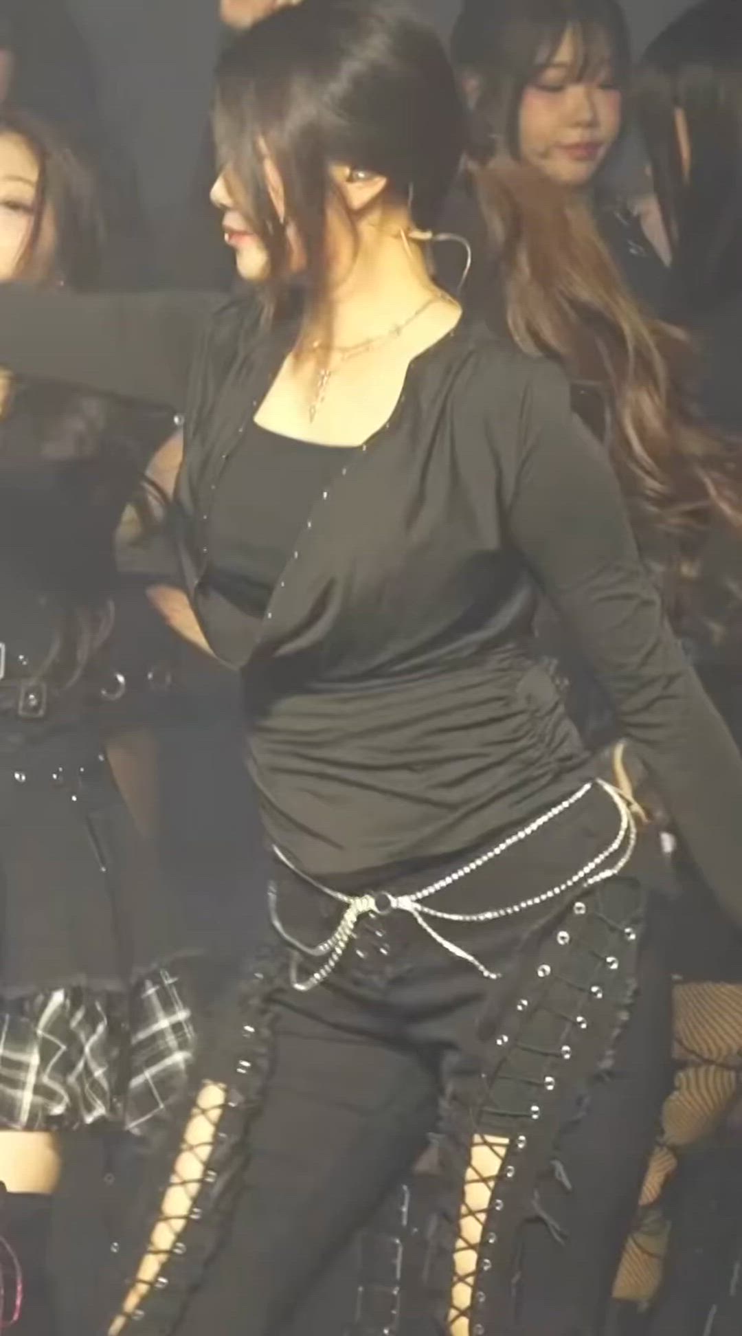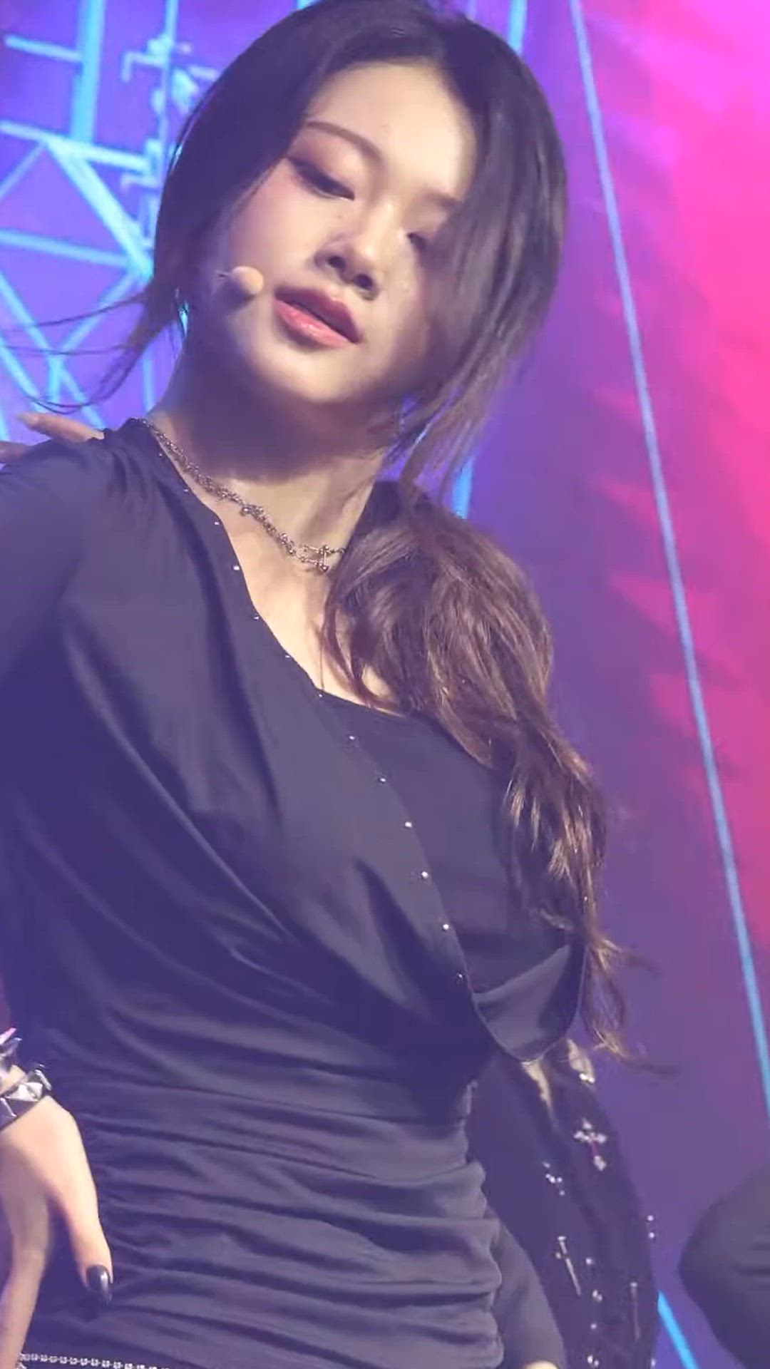 CLASS:y - Jimin 패션 분석 원지민은 강렬한 퍼포먼스룩을 선보이고 있습니다. 검은색 튜브톱과 버건…
