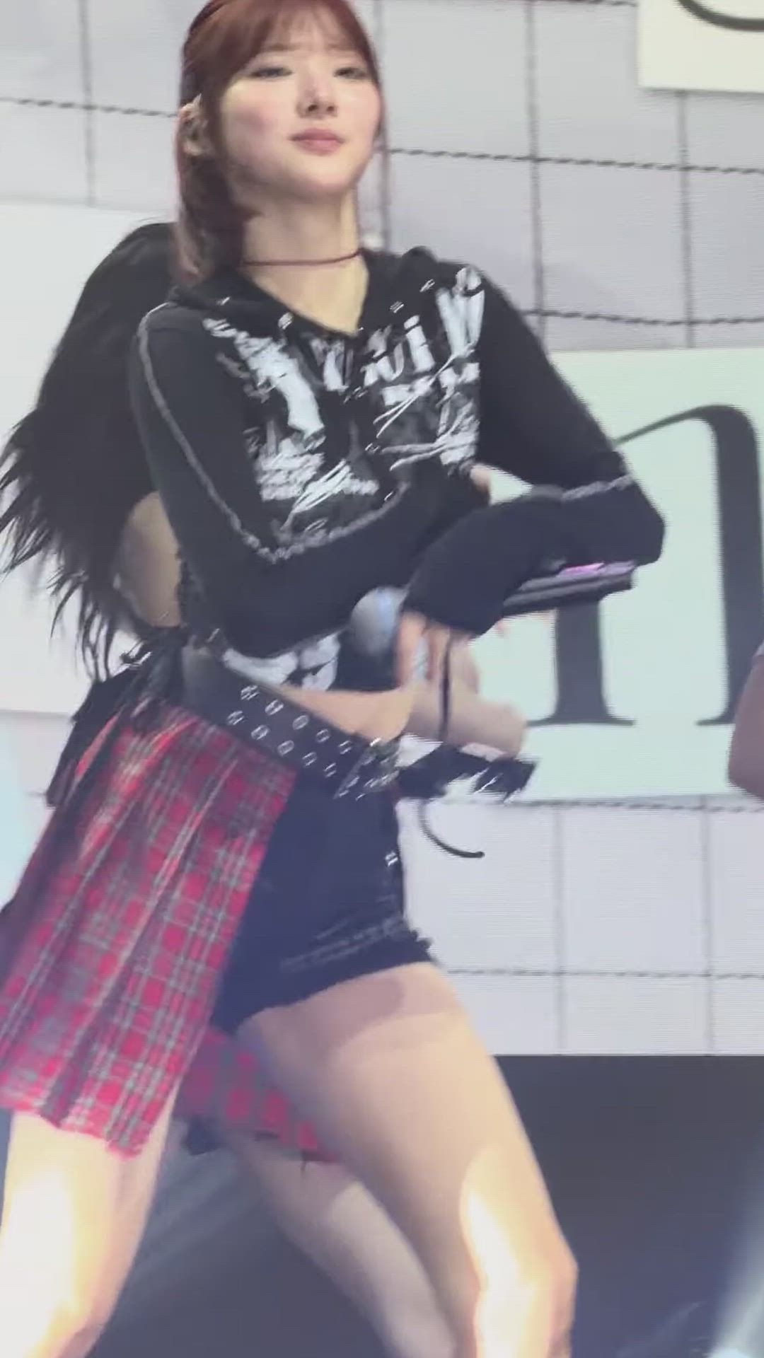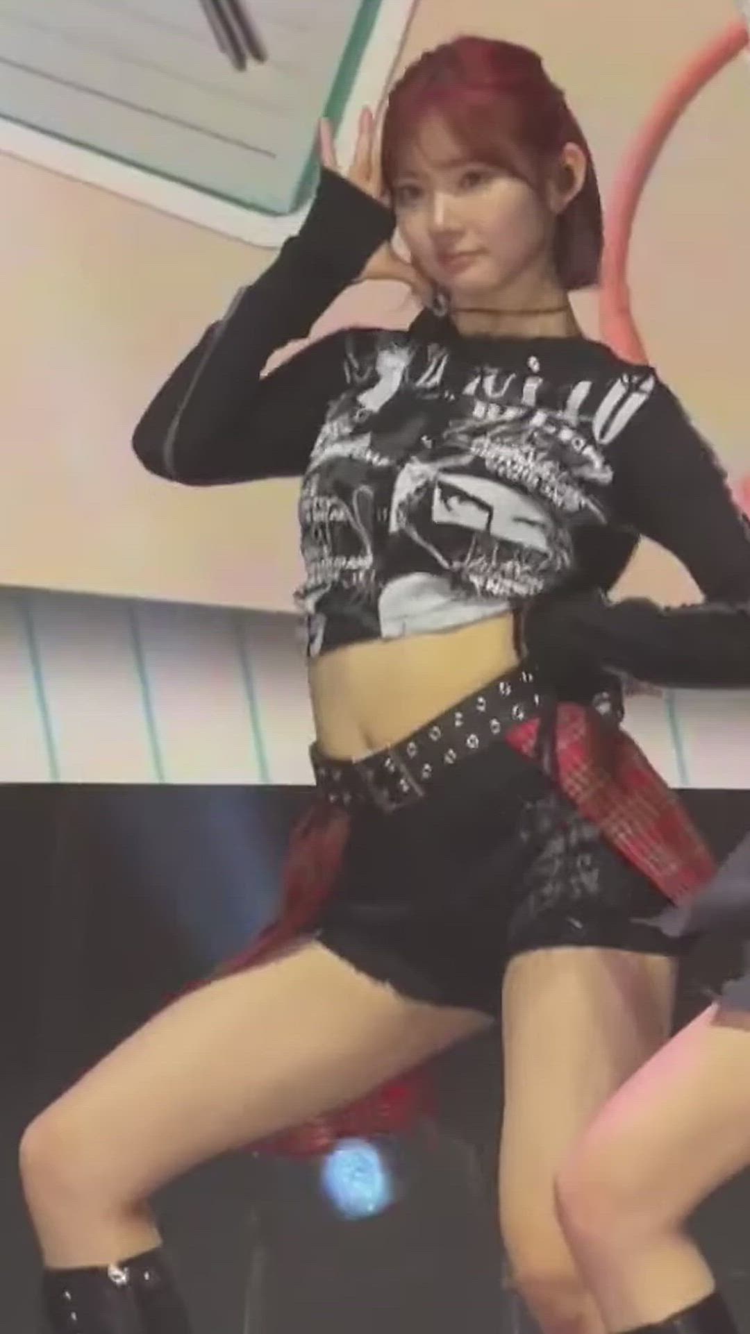 Jiwoo - Hearts2Hearts 패션 분석 지우는 그래픽 크롭탑과 쇼츠를 매치한 펑크룩 스타일의 무대…