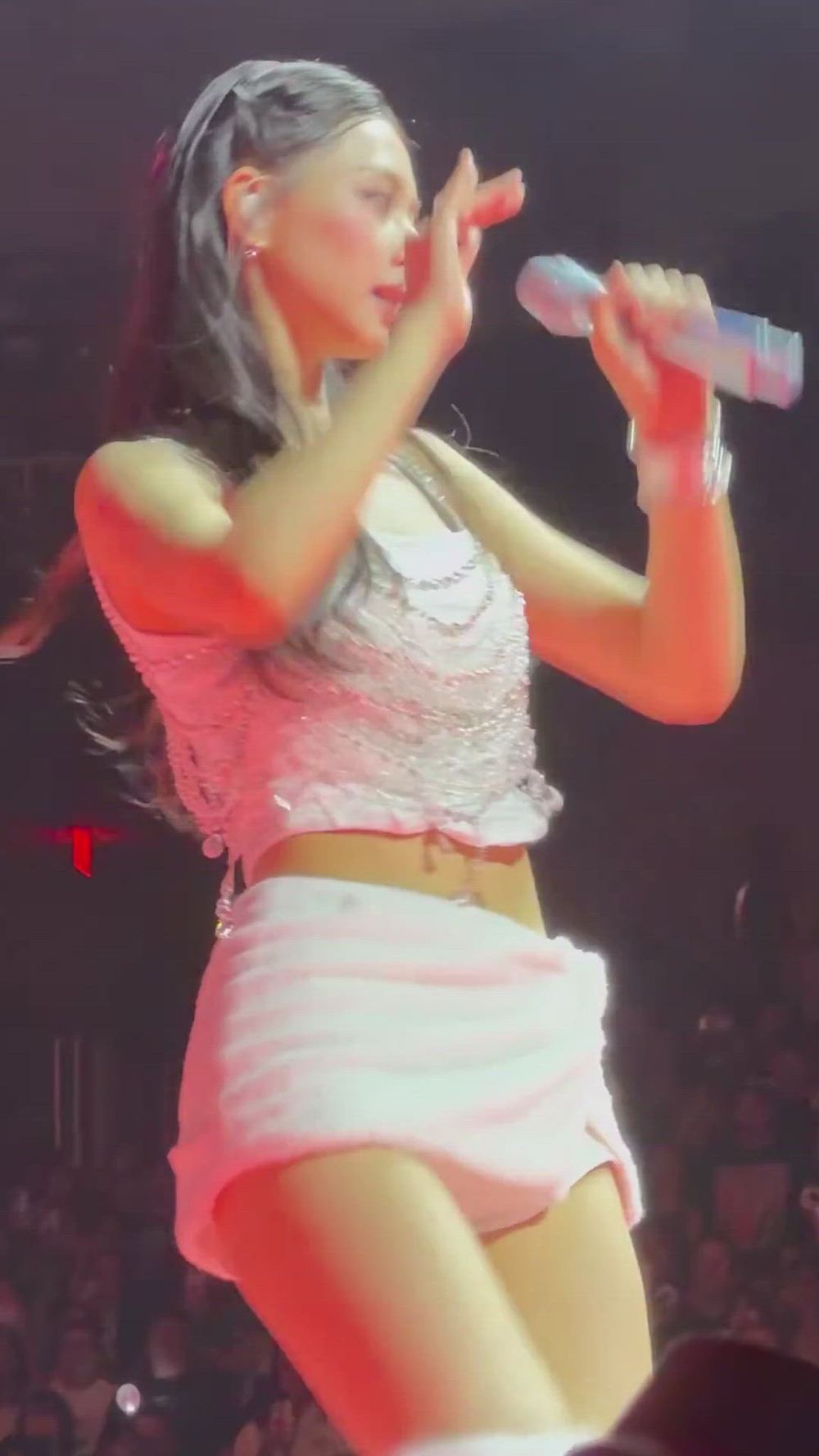 TWICE - Tzuyu 패션 분석 쯔위는 무대 위에서 화려한 비즈 장식이 돋보이는 크롭 탑과 깔끔한 핑크 …