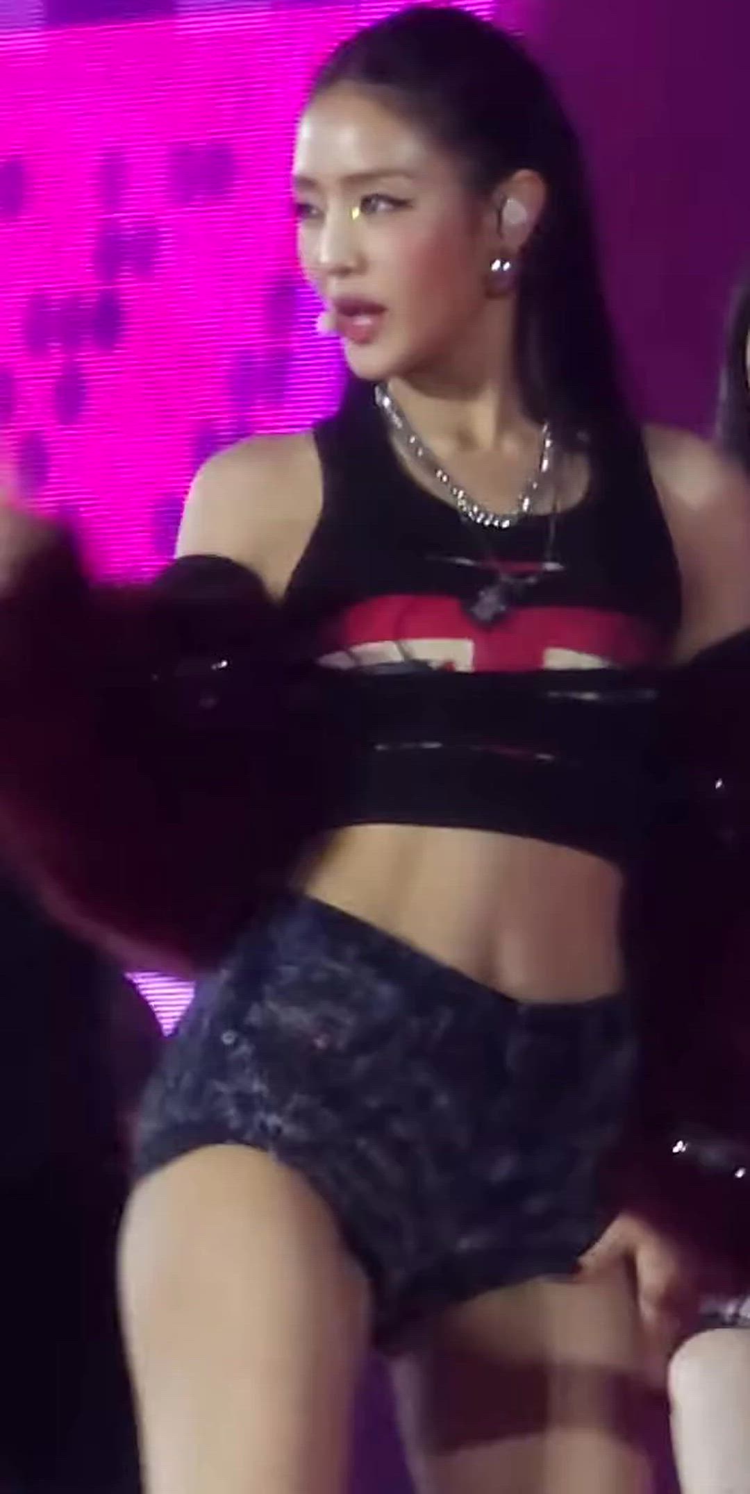 Minnie - I-DLE 패션 분석 민니는 블랙 튜브톱과 로우라이즈 하의를 매치하여 시크하고 도발적인 분위…