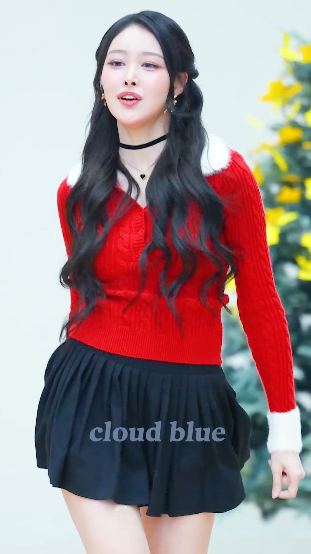 SAY MY NAME - Soha 패션 분석 SAY MY NAME의 Soha는 붉은색 니트 카디건과 검은색 …